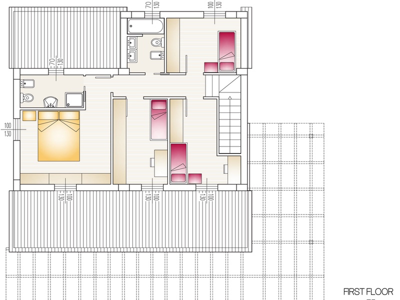 На втором этаже расположены две большие спальни и одна поменьше, 2 ванные комнаты.