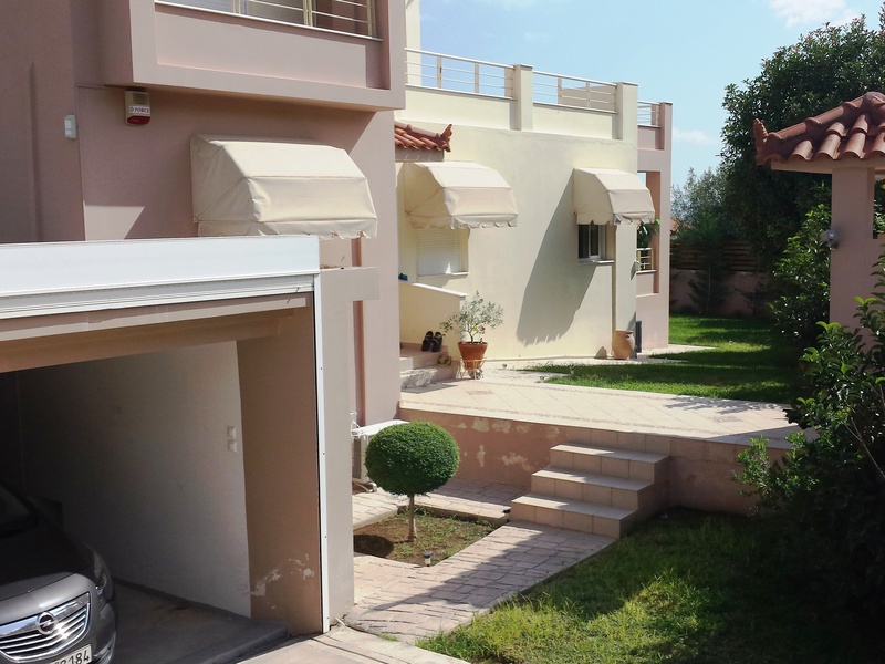 2-й этаж, 100 кв.м. 3 спальни с балконами, большая ванная комната с угловой ванной, кладовая, очень большая веранда с фантастическим видом на море и горы. Снаружи есть большой сад , барбекю, гараж на две позиции. 2 км. от моря, 3 км от электрички которая идёт в аэропорт и в Афины. Цена обговаривается.(9454)