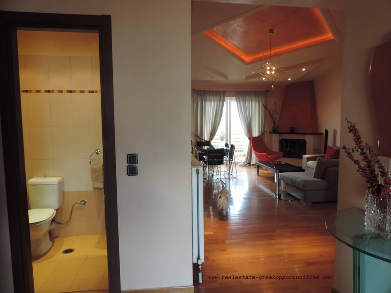 Квартира 145 квадратных метров. 2 уровня, построен в 2005 году на первом этаже: 1 большая гостиная с камином, потолок со скрытой подсветкой, 1 кухня с техникой, кухня Miele, 1 wc.To нижний уровень имеет 3 спальни, 2 ванные комнаты с джакузи, везде есть деревянные полы, балконы во всех номерах и холле, барбекю на балконе, крытая парковка. 2 хранения, цена продажи € 360,000. расположен в регионе Геракас 20 минут от аэропорта Элефтериос Венизелос.
