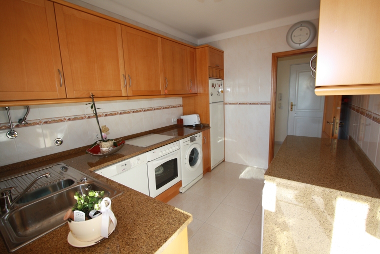 Просторная гостиная, так же оснащенная кондиционером, имеет совместный с кухней балкон. Кухня полностью оборудованая и имеется площадь для барбекю, идеально подходит для подготовки и проведения обедов на открытом воздухе.