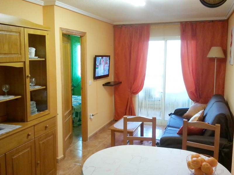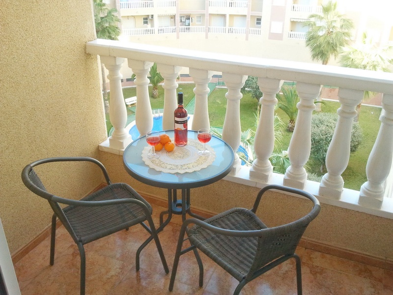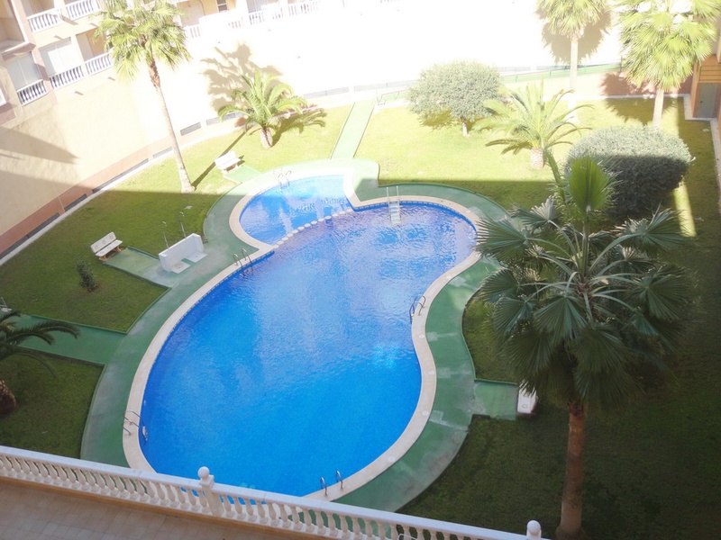 Квартира на 4 этаже в центре Торревьехи. В доме есть лифт. С балкона вид на бассейн с зеленой зоной отдыха.