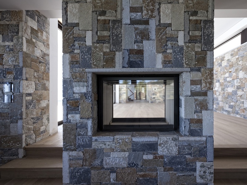 > Двухсторонний камин в гостиной