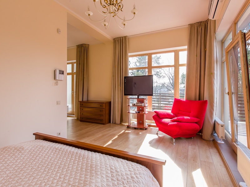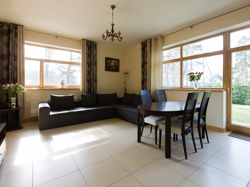 Территория участка благоустроенна, огарежена туями. Парковочное место для двух автомашин. Все городские коммуникации, автономное газовое отопление, кондиционер. На первом этаже и в санузлах, "теплый пол". Спокойный частный сектор, тихое место. Море 15 минут пешком прогулочным шагом. На машине до Аэропорт Рига 15 минут, Рига центр 25 минут на машине. Квартира продаются с мебелью. Покупая квартиру вы приобритете землю 300 м2