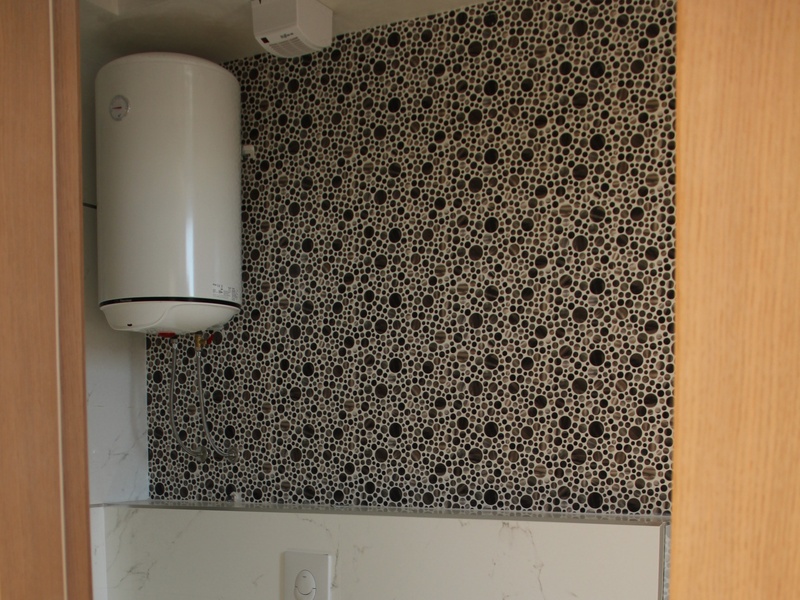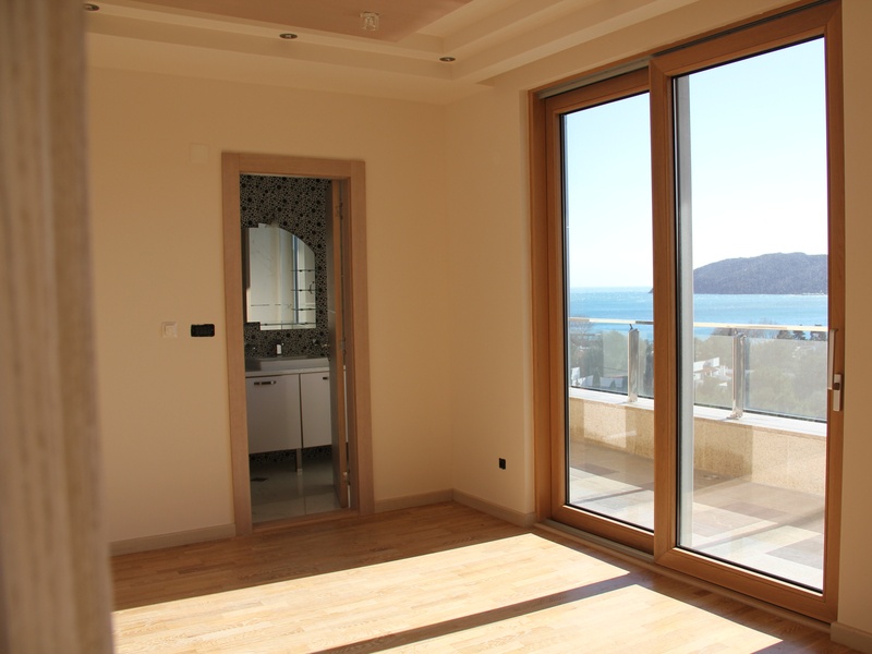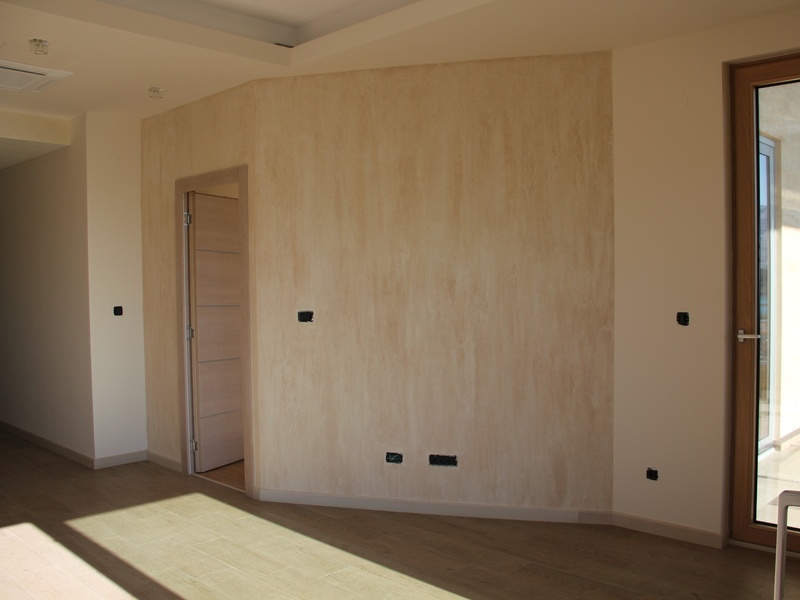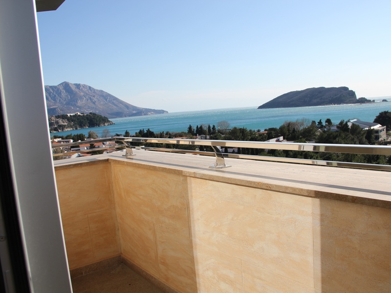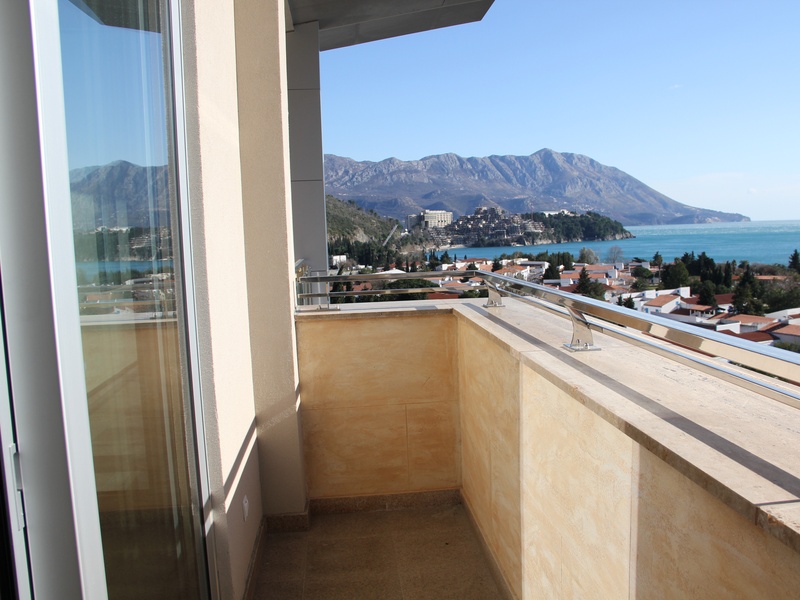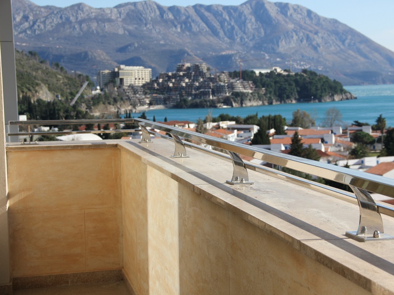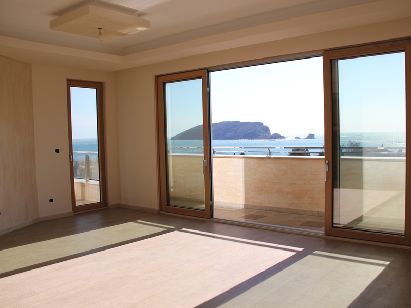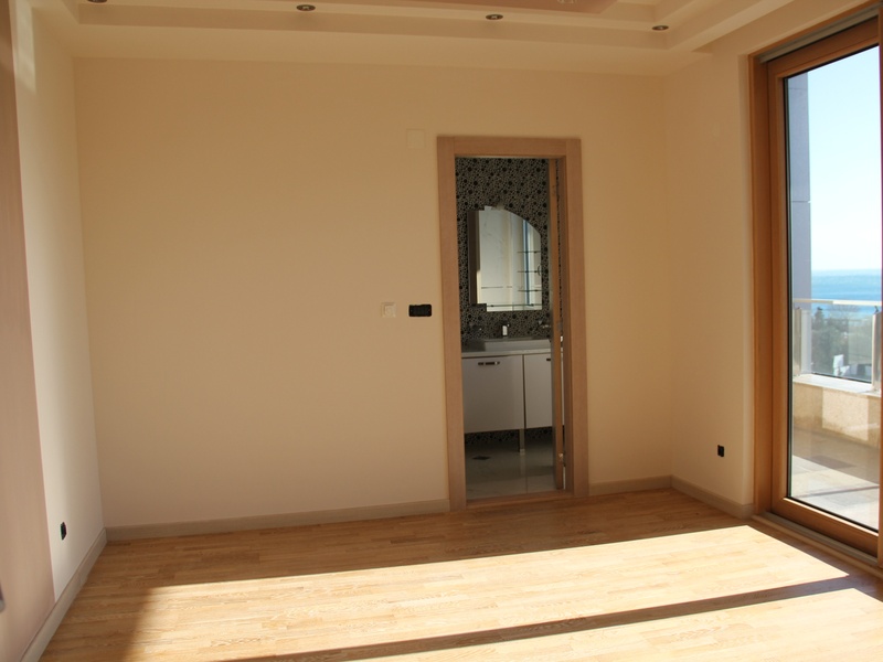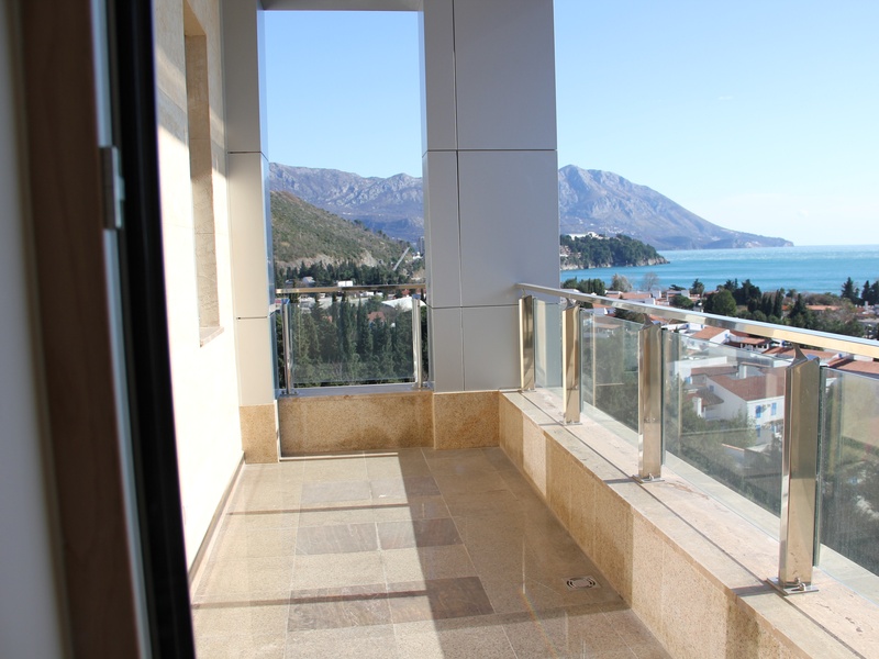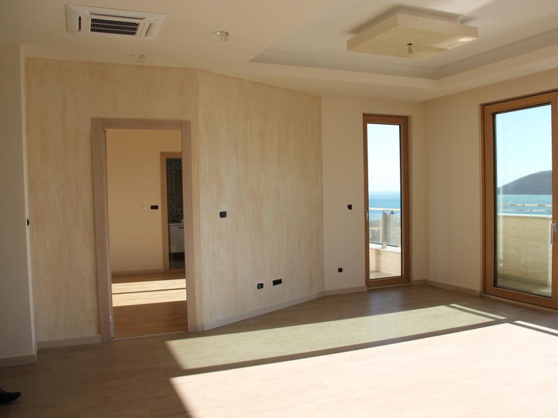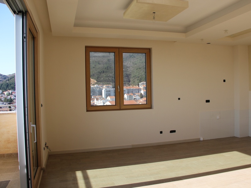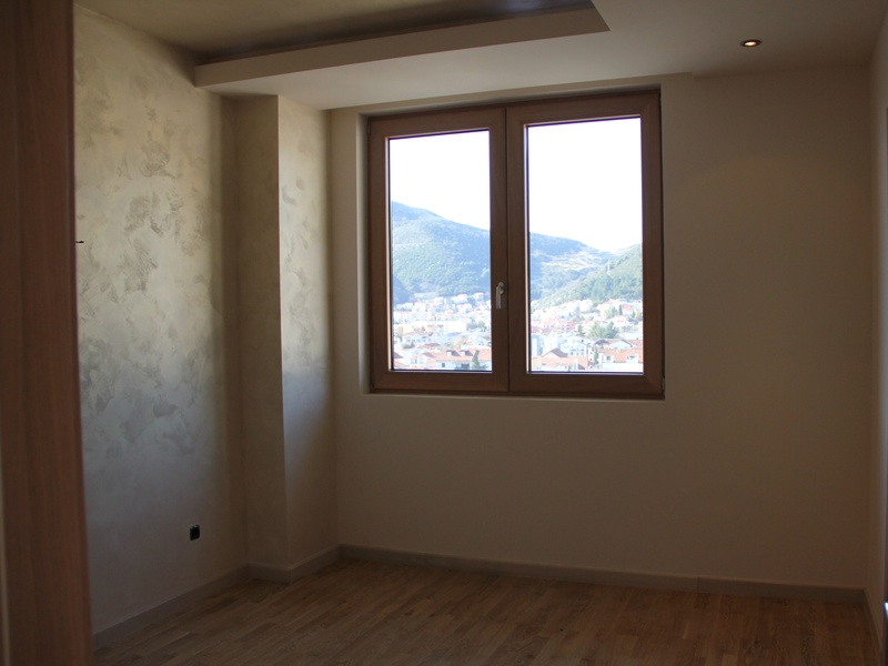 Из панорамных окон квартиры открывается восхитительный вид на море и Будву,при высоте потолков 4 м. тонкий алюминиевый профиль позволяет не закрывать красивый вид из окна на море и город, но и не дает шуму проникнуть в ваш дом,потому что квартира укомплектована высококлассными алюминиевыми стекло пакетами с термокамерами. На полу итальянская керамика PORCELANOSA. Оборудованные подвесные потолки с возможностью установки контурного освещения.