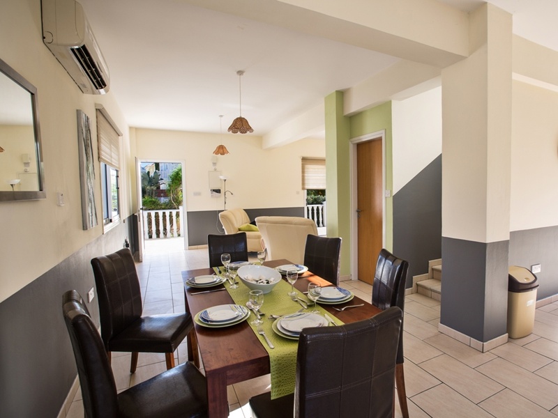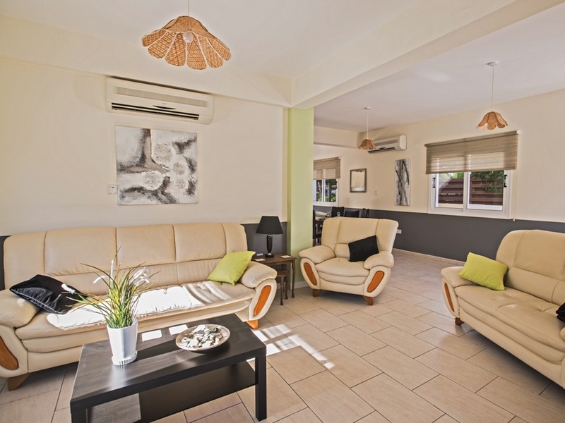 На первом этаже вы найдете гостиную открытого плана, кухню и столовую, В гостиной есть кожаные диваны, широкоэкранный телевизор, DVD-плеер, Спутниковые каналы и Wi-Fi. Кухня оборудована всеми необходимыми электробытовымиприборами. Также, на первом этаже вы найдете гостевой туалет. В вилле включена сигнализация.