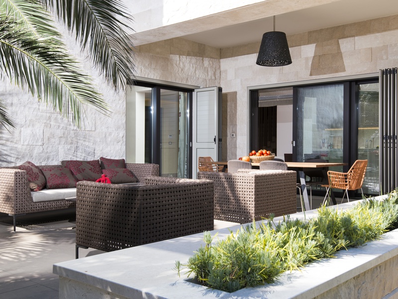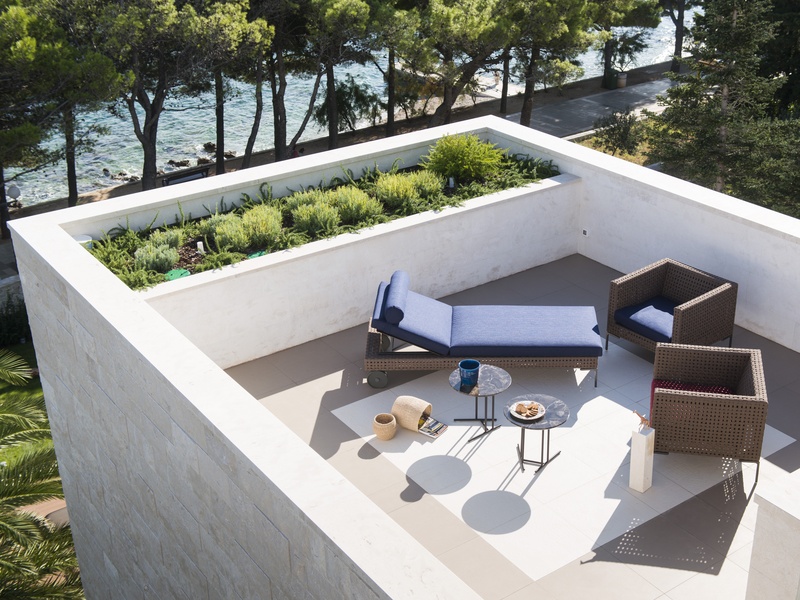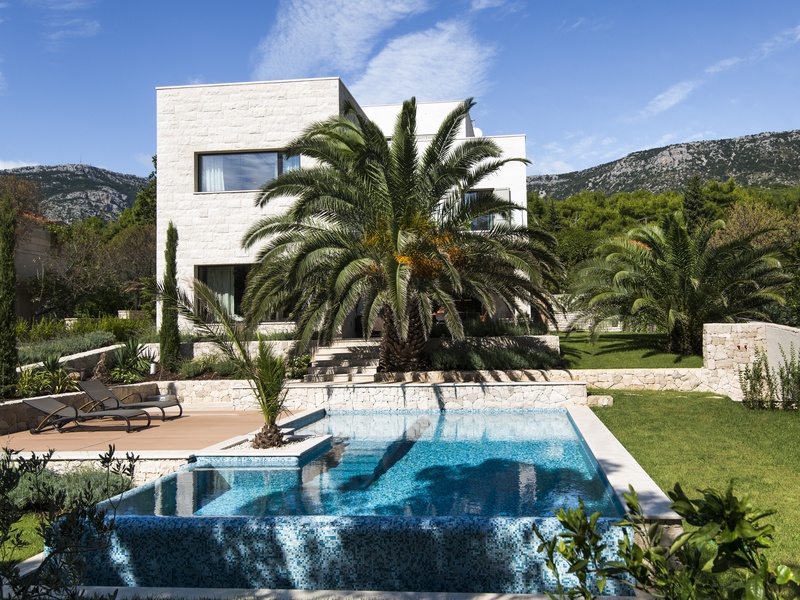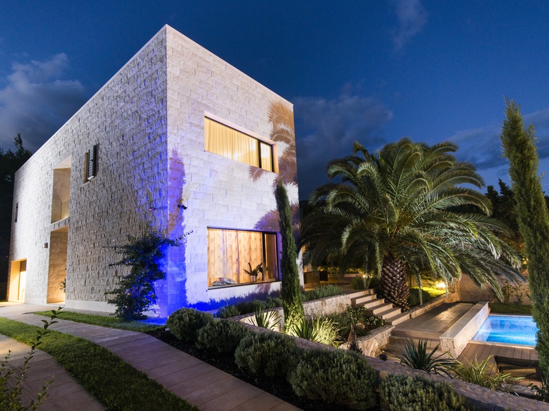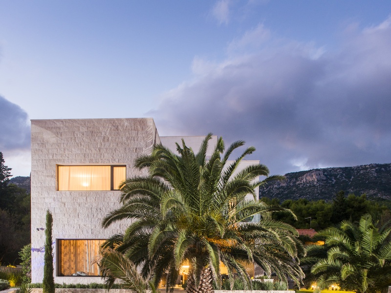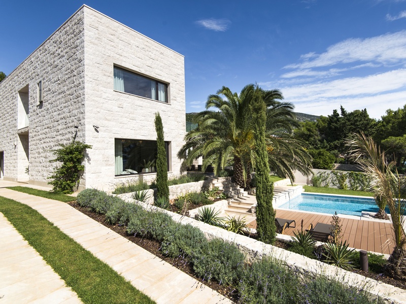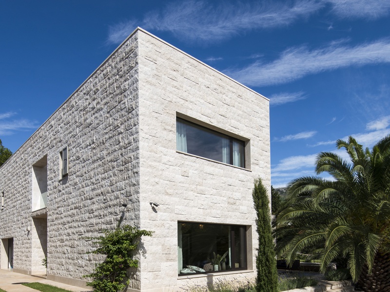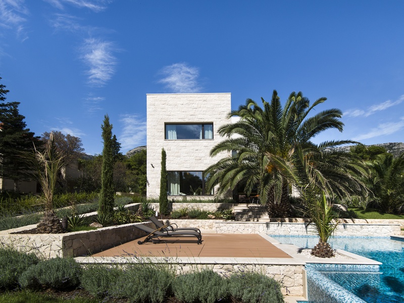 Вилла представляет собой смесь традиционной и современной архитектуры. Её первое превосходство в выборе каменного материала, второе - это прекрасное сочетание двух подходов: видимая плоская крыша и минимализм в геометрической структуре, одновременно в современной интерпретации типичного Далматинского фасада.
