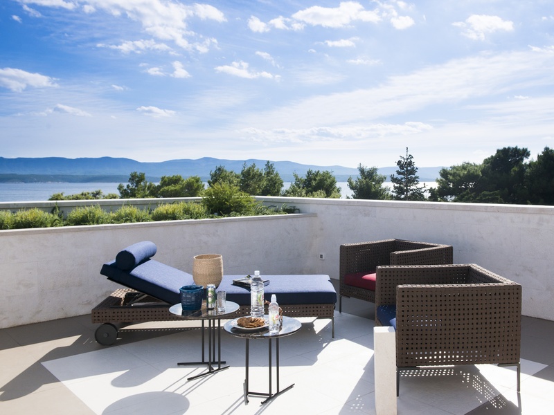 Мотив кружева прослеживается во всех деталях. В гостиную выходят три спальни на втором этаже. А основная мастер-спальня расположена выше, ее панорамные окна выходят на набережную и море. Большая терраса на крыше в передней части главной спальни, разработанна, как расширение гостиной, с видом на самую красивую часть Бола и имеет полную конфиденциальность.