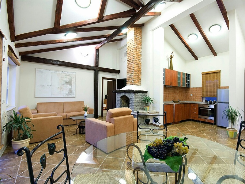 1 этаж - апартаменты 66 м2 (гостиная, спальня, ванная, кухня и терраса с незабываемым видом на море и горы).