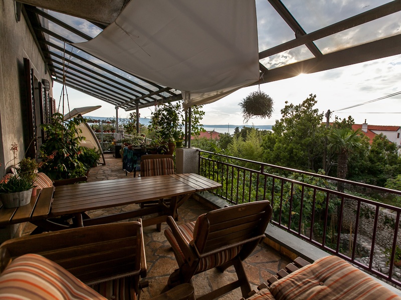 На участке площадью 1000 квадратных метров расположены два дома. Первый дом площадью 300 квадратных метров включает 4 спальни, гостинную, кухню, две ванных комнаты и 2 террасы. Второй дом площадью 80 квадратных метров включает 3 спальни, кухню и ванную комнату. Расстояние от моря 80 метров. Нови Винодольски находится в 45 км от города Риека и в 45 км от аэроворта на острове Крк.