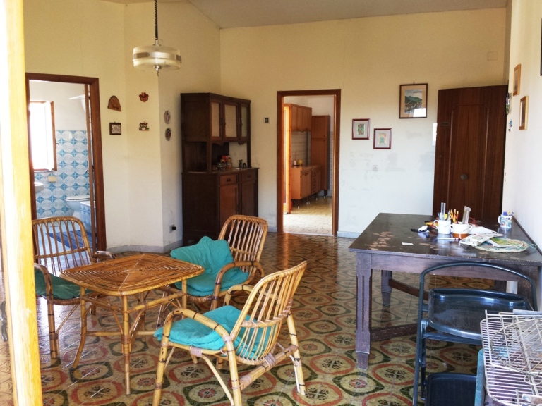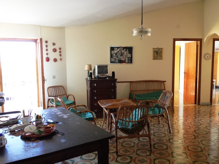 В самом центре города Скалея в нескольких шагах от пешеходной улицы и в 400 метрах от моря. Апартаменты расположены на пятом, последнем этаже. Апартаменты общей площадью 120м2 состоят из: гостиной, кухни, кладовки, трёх спален, санузла, балкона и террасы 20м2 с видом на историческую часть города. Коммунальные платежи около 300 евро в год.