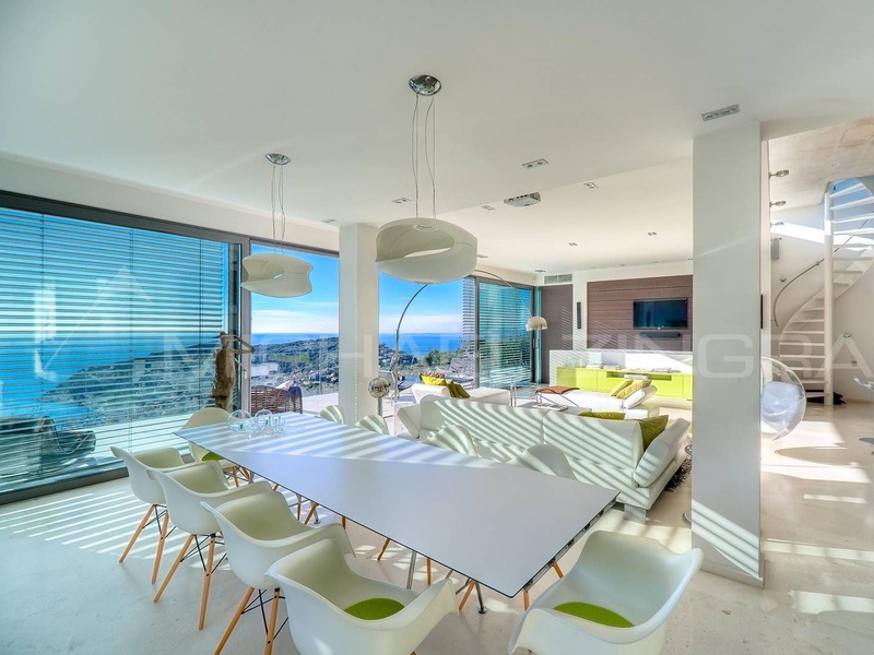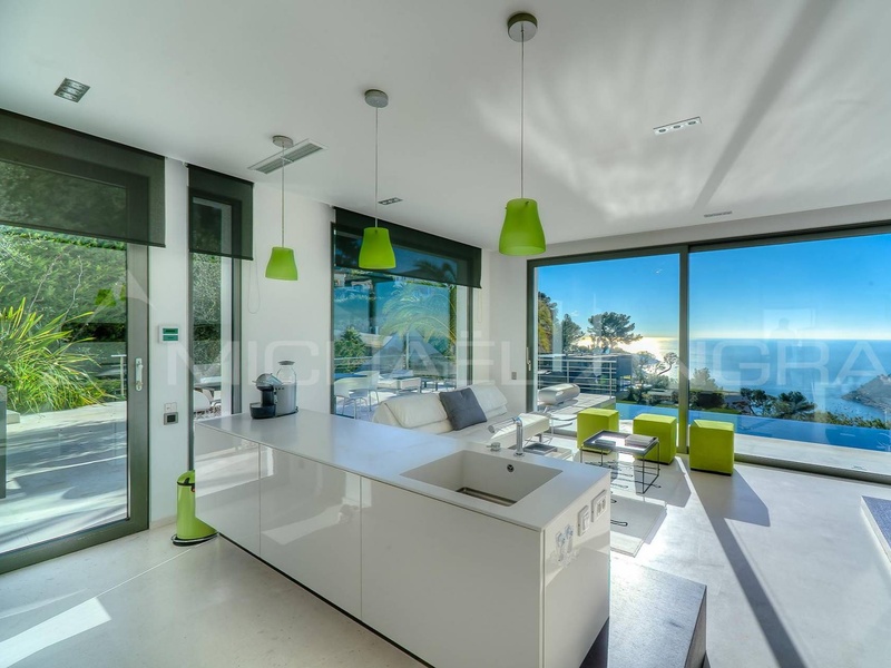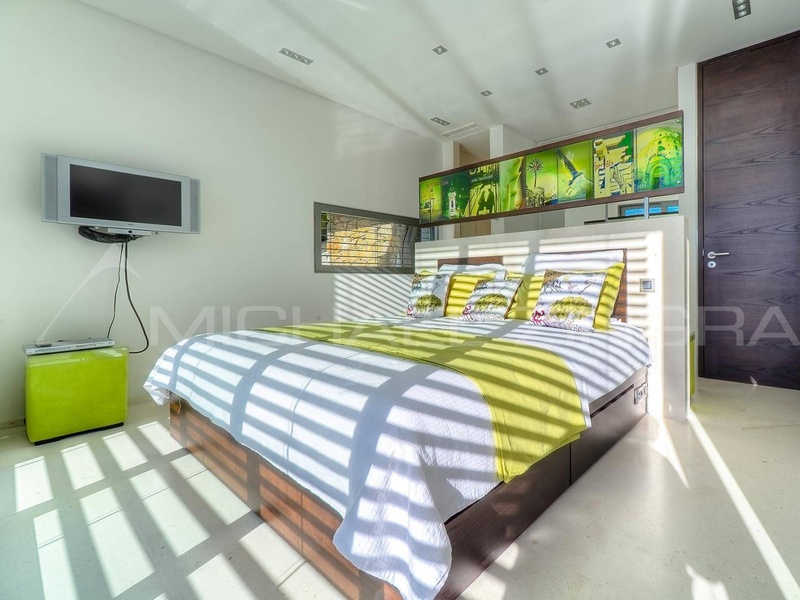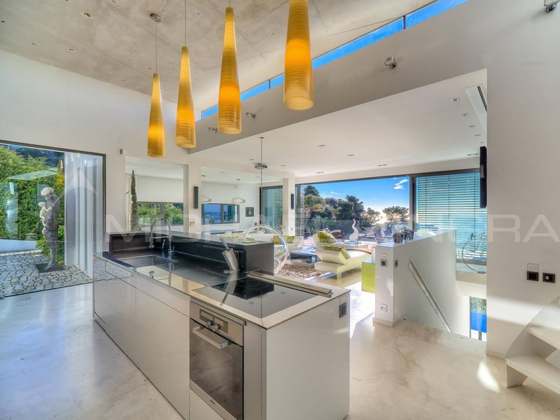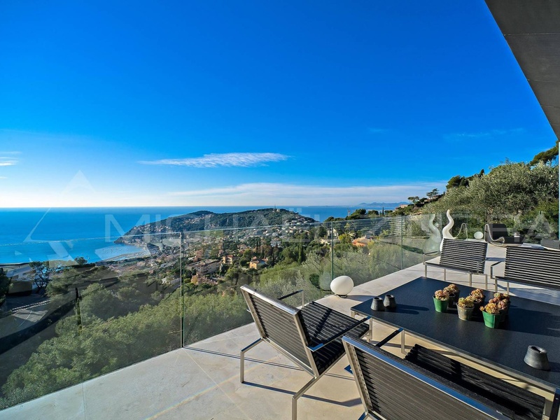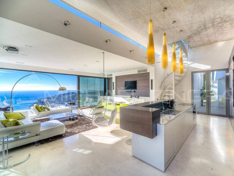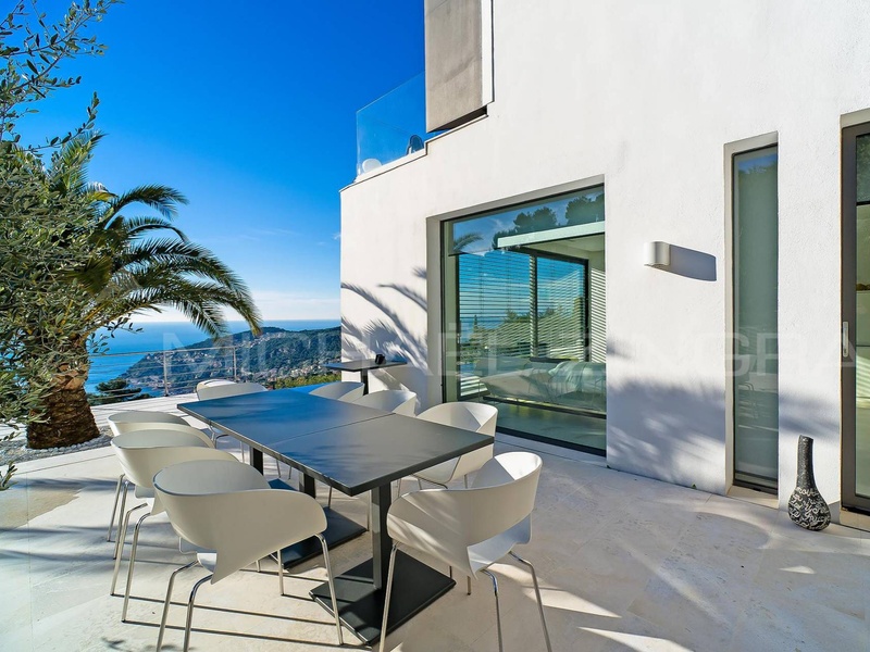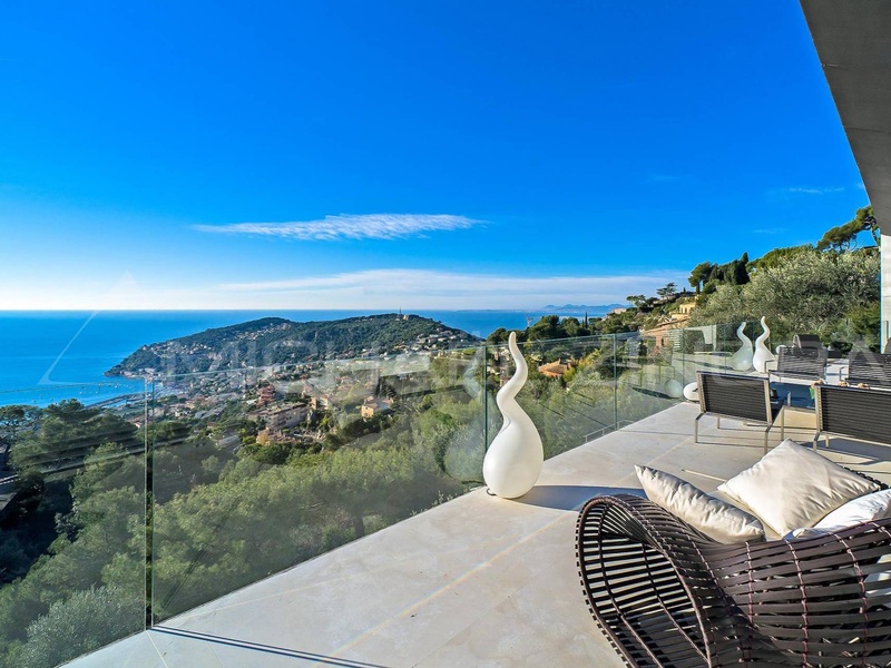 Великолепное ультра современное поместье с панорамным видом на порт Вильфранш-сюр-Мер, расположенное в закрытой охраняемой резиденции. В этом прекрасно оборудованном доме жилой площадью около 260 кв.м Вас поразят его просторные помещения, высокие потолки, красивые террасы и сказочный бассейн. Первый уровень дома состоит из прихожей, большой гостиной, совмещенной со столовой; полностью оборудованной американской кухни, спальни с прилегающей ванной комнатой и гардеробной. Все комнаты выходят на великолепную террасу, ориентированную на юг. На уровне сада находятся 2 спальни с душевыми комнатами, кабинет и замечательные двухкомнатные апартаменты для гостей с выходом на большую террасу с прекрасным бассейном. На крыше дома имеется терраса с изумительным видом на море, на которой возможно установить джакузи. Парковка с автоматическими воротами, бельевая комната и подвал.