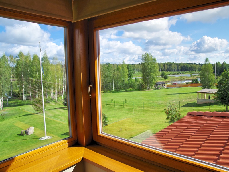 Деревянные окна из тропического дерева меранти. Большие окна дают ощущение простора и освещённости.