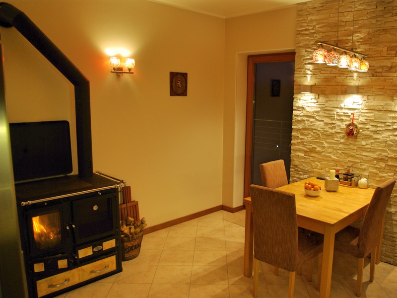Отопление дома - качественные электрорадиаторы GLAMOX, дровяной воздухогрейный камин, уютная итальянская дровяная печь в кухне.