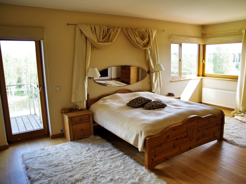 В спальной комнате первого этажа установлен вместительный шкаф-купе. В дополнение к этому в доме имеется отдельная гардеробная (на втором этаже).