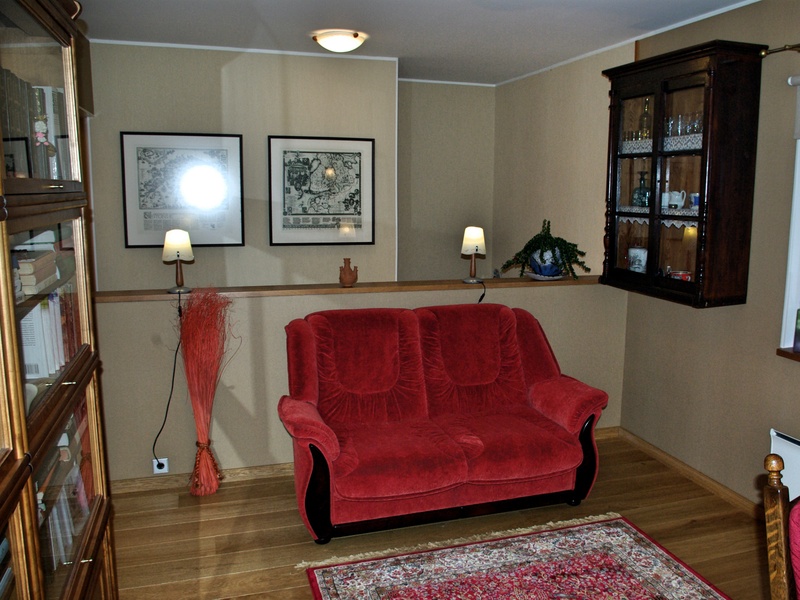 На полу просторной жилой комнаты постелен качественный натуральный паркет породы тика.