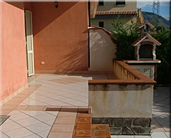 Продается квартира на вилле в Скалее, в регионе Калабрия, в провинции Козенца Италия. Квартира двухуровневая на вилле на четыре семьи в элегантном комплексе " Парко Рома " на холме Петроза в Скалее. 2 км до моря и 3 км до центра Сан Никола Арчелла, прекрасное расположение, зона свежего воздуха. Квартира включает в себя вход в дворик, вымощенный плиткой, с душем, кладовкой на улице, барбекю, террассой, все освещается. Гостиная с камином, и небольшой ванной комнатой. Второй этаж с 2 спальными комнатами с двуспальными кроватями, вторая ванная комната и панорамная террасса. Квартира оснащена автономным газовым отоплением и продается с мебелью. Общая площадь под крышей: 75,00 м2; Общая жилая площадь:65,00 м2; Площадь сада: 80,00 м2; Площадь террасы:25,00 м2; Продаваемая площадь: 95,50 м2. Спальня: 3,80 x 2,96; Детская комната: 3,63X3,05; Ванная комната: 1)2,46X1,75 - 2)1,20X2,50; Гостиная: 4,80X2,60+3,70X1,50+3,20X4,40; Коридор: 1,60X2,05.