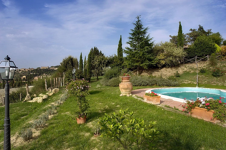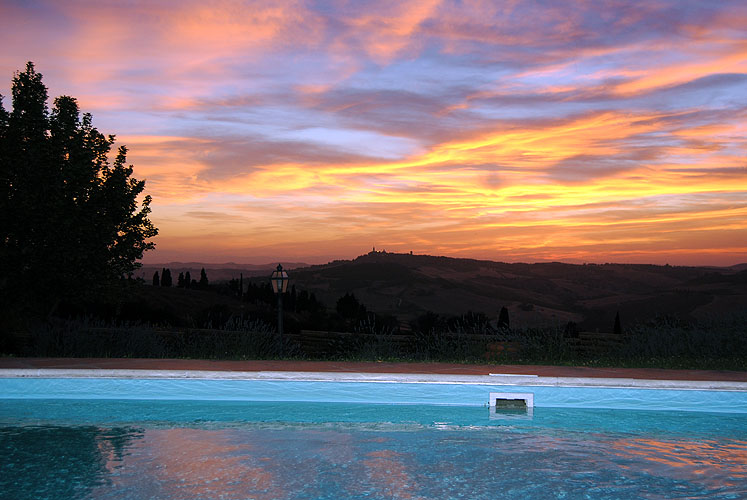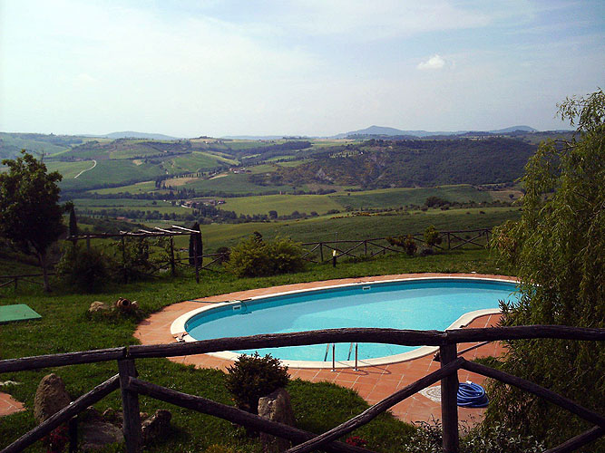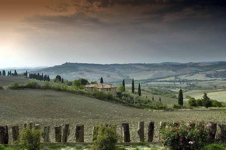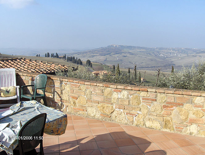 Доминантное панорамное положение позволяет наслаждаться видом на окружающие холмы и долины, а также на города Монтикьелло и Пиенца.