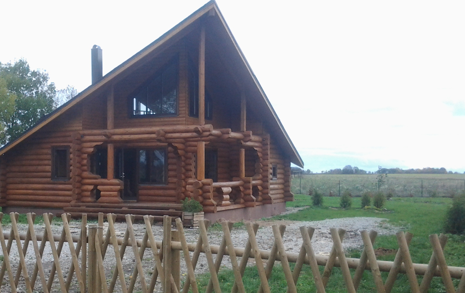 Высококачественный двухэтажный дом из сруба расположен в деревне Сака , в живописном районе Балтийского залива .