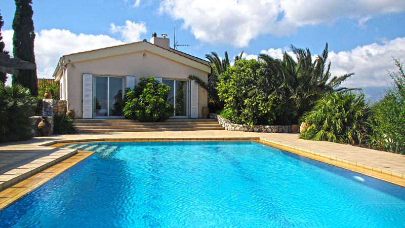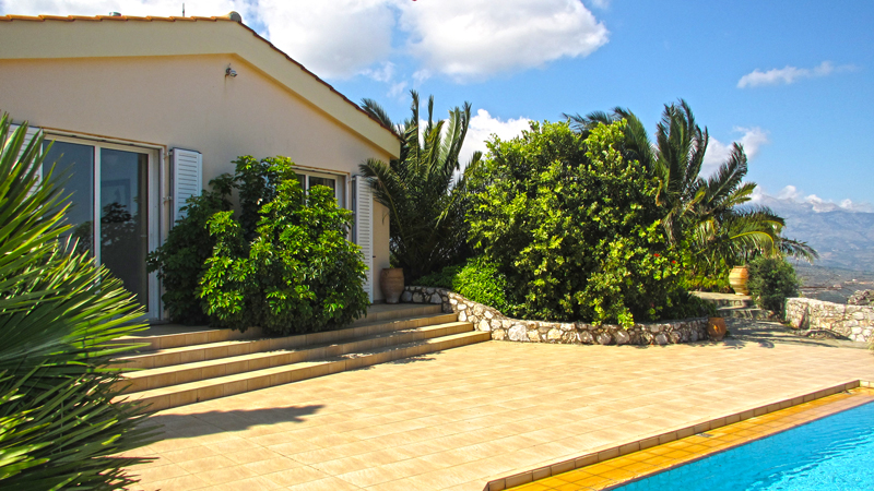 Большая территория виллы благоустроенна. Тенистый сад и цветник окружают бассейн площадью