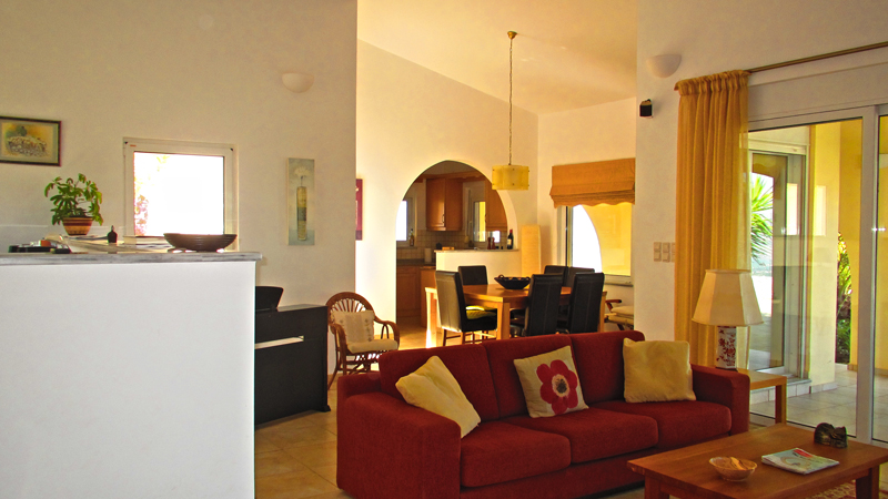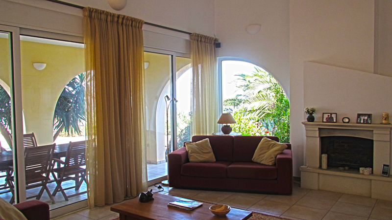 Вилла выполнена в одном уровне. На вилле 3 спальни, 2 ванные комнаты, гостевой туалет, кабинет, большая открытая гостиная с камином, столовая и хорошо оборудованная отдельная кухня. На вилле большие террасы и балконы, с которых открывается панорамный вид на море и Белые Горы.