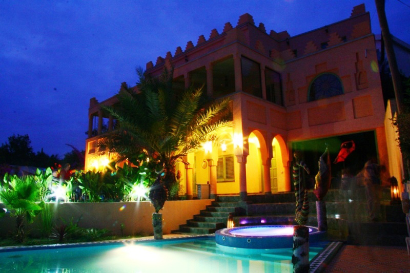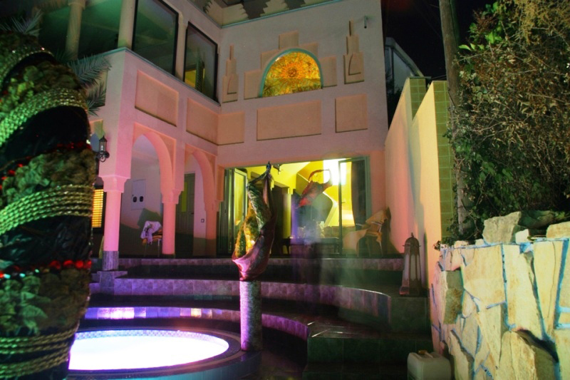 Прекрасная трехэтажная вилла в 100 метрах от моря в живописном уголке на Адриатике в поселке Добра Вода. Здание выполнено в марокканском стиле и окружено чудесным каскадным садом. Внутри сада находится переливной бассейн с зелено-голубой подсветкой, благодаря которой блики воды неотразимо отражаются в окнах и витражах дома. Необыкновенно сказочное зрелище!