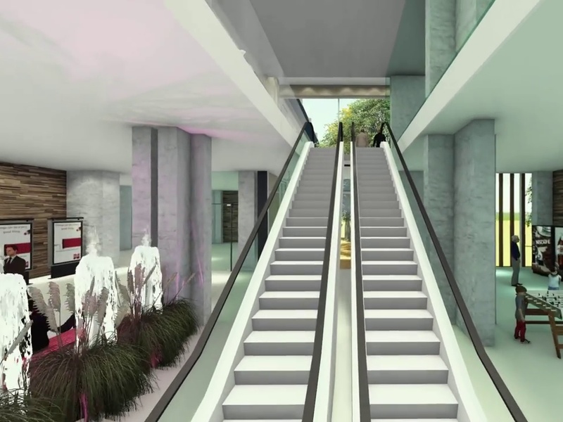 Все коммерческие помещения имеют 2 выхода на Променад и в само здание Торгового Центра.Все здание окружено 4 улицами,которые являются самыми проходимымив городе,8-ть входов/выходов в здание со всех улиц.