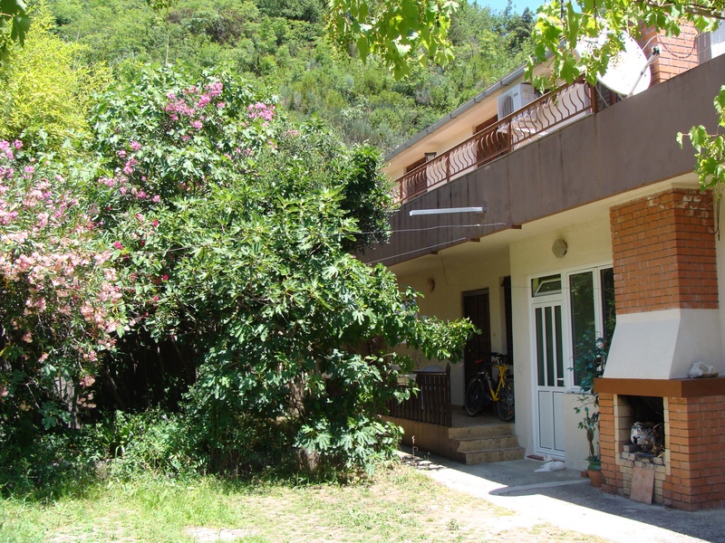 Паркинг на 2 автомобиля. Во дворе камин, в котором можно делать шашлыки. Перед домом – сад с инжиром, виноградом, магнолией и цветами, обрамленный забором живого бамбука. Позади дома красивые горы с вековыми деревьями, в тени которых можно прогуливаться в жаркие летние дни. Рядом с домом горная речка, где водится форель, и можно купаться во время летнего зноя.