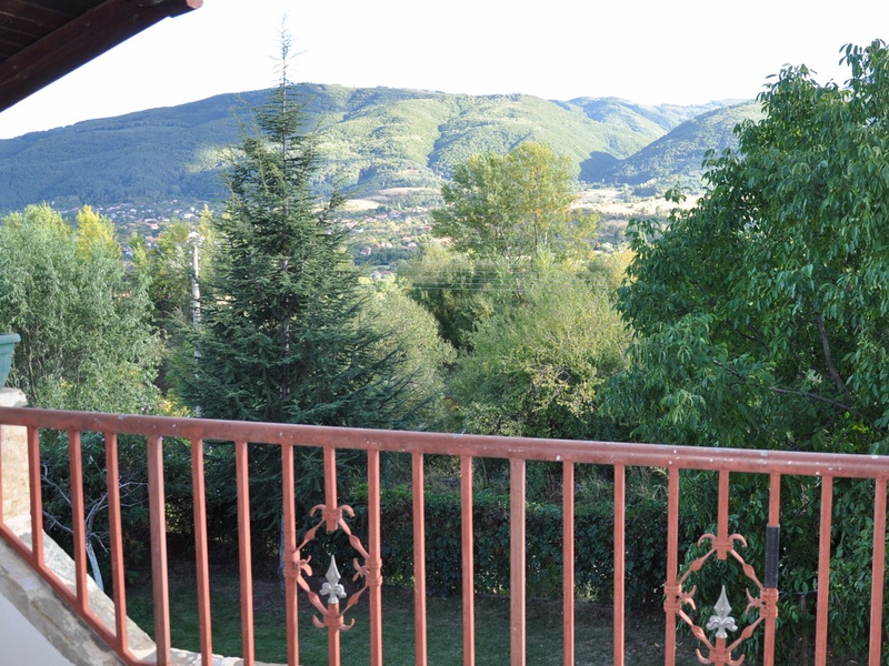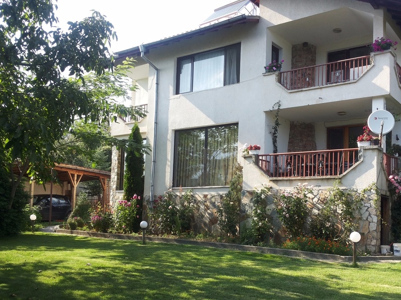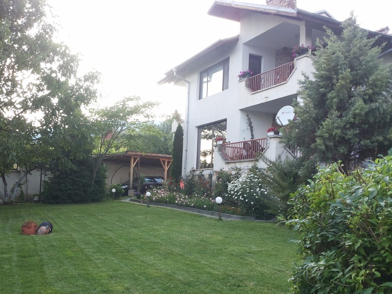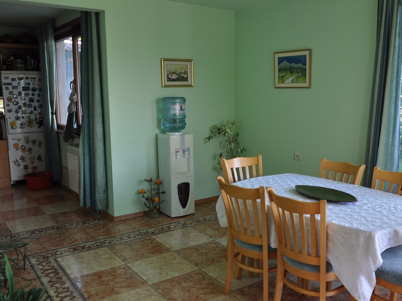 The house is situated in the suburbs of Kyustendil 2.5 km from the town . The placement of the house is : Basement: 2 rooms / 1st floor: large living room with panoramic windows and fireplace, dining room, kitchen, bathroom and a separate room / 2nd floor: large room with fitted wardrobes, 4-bedrooms and bathroom. The house has solar panels on the roof, with its own water and central heating with wood. The yard is terraced and has a barbecue, a rock garden with a small waterfall, garden and many types of fruit trees, ornamental trees and shrubs. There is also a garage for 3 cars. The house is fully furnished .The view is amazing and to Osogovo and Kyustendil Valley.