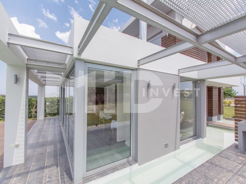 Предлагаем вам красивую виллу площадью 140 кв.м. выполненную в стиле хайтек-минимум цвета, минимум линий, минимум стен и перегородок. Вся фронтальная часть здания состоит из стекла. Дом притягивает своей лёгкостью и прозрачностью. Здесь есть всё необходимое 3 спальни, зал с камином, 2 ванные комнаты. На участке с ландшафтным дизайном площадью 1100 кв.м. есть бассейн с подсветкой, большая веранда, барбекю и место для парковки. С больших балконов открывается прекрасный вид на море.http://www.midinvest.gr/ru/Халкидики-Кассандра-Вилла-794/