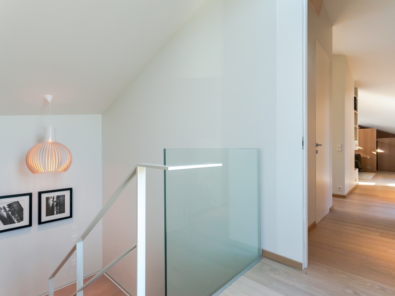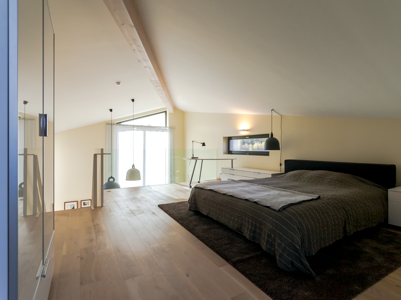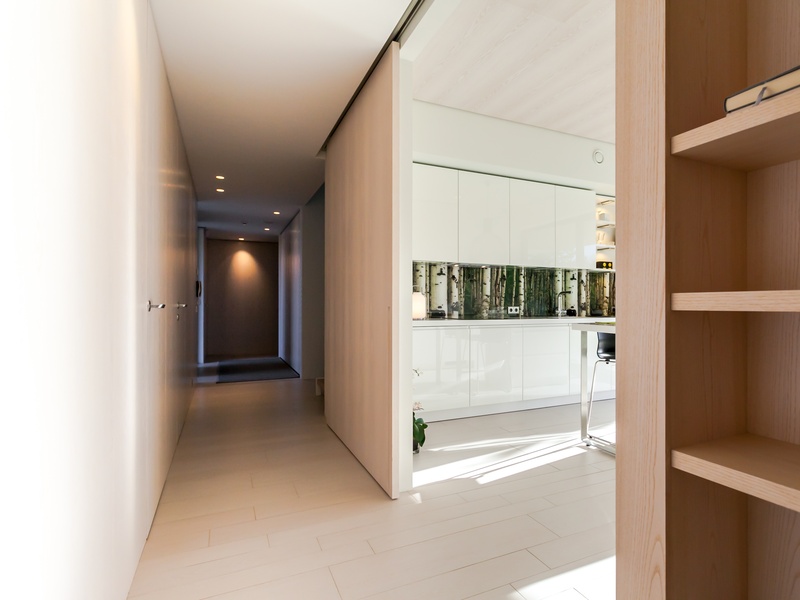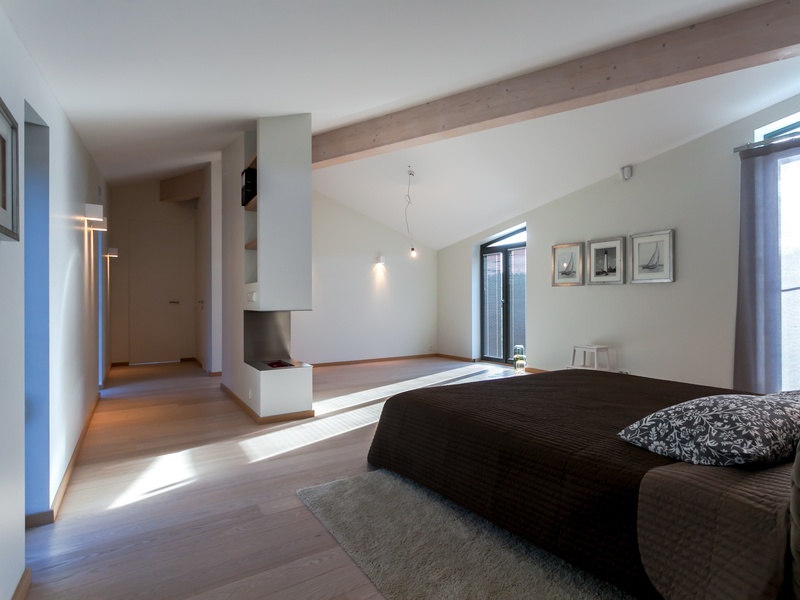 При входе через главную дверь открывается просторная прихожая. Кухня отделена небольшой перегородкой и камином. От главного входа прихожая ведет к лестницам на второй этаж, где расположены просторные спальные комнаты. В спальных комнатах на втором этаже – большие окна от пола до потолка, отдельная ванная комната с душем, ванной и туалетом, просторный гардероб и терраса.