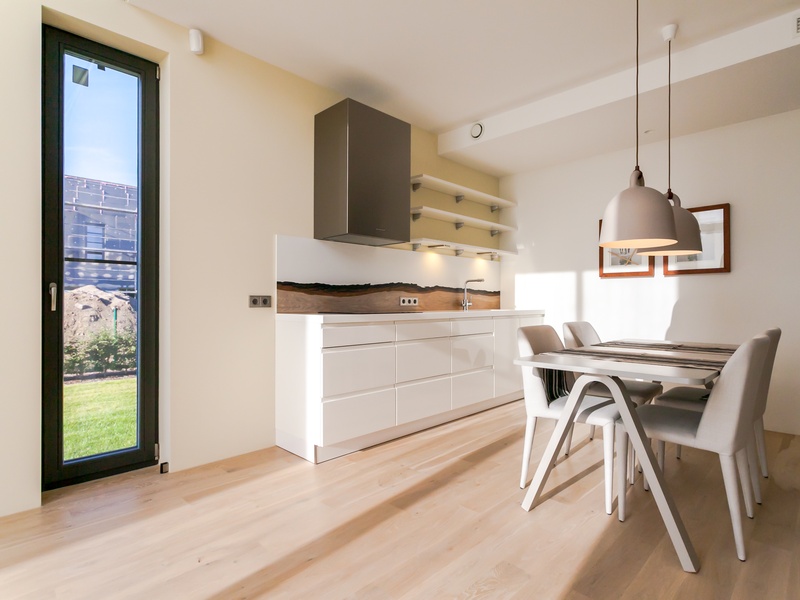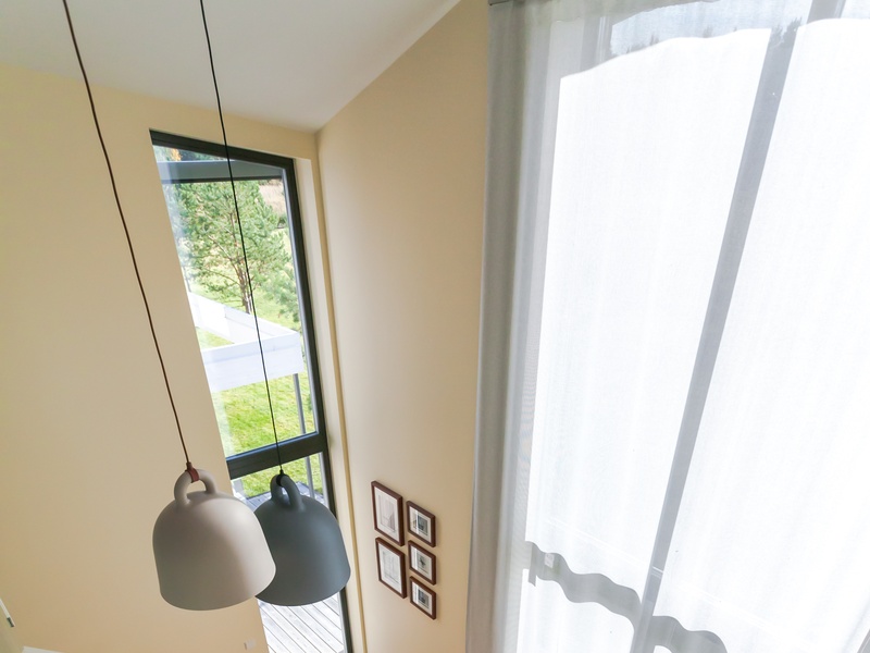Отопление здания осуществляется за счет геотермальной котельной, теплоносителем является вода, которая циркулирует в трубах подогрева полов. Высокоэффективная котельная удобна и проста в работе и позволяет использовать также солнечную энергию. Класс энергоэффективности здания – B. На дом выдано разрешение на пользование!!! На окнах солнечной стороны дома установлены автоматические рольставни. На участке можно построить домик для гриля (30 м³), имеется проект. Гараж вмещает 2 автомобиля.