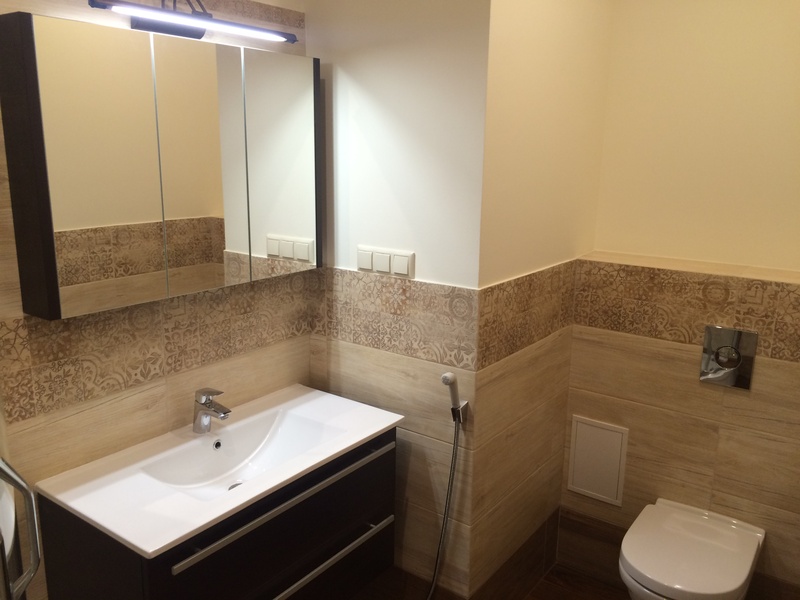 Полная отделка, заменена электроинсталяция, сантехнические стояки и трубы. Дубовый паркетный пол, деревянные межкомнатные итальянские двери, пластиковые стеклопакеты, алюминиевые радиаторы "Ferolli" с терморегуляторами, двойная металлическая дверь, шкаф-купе, встроенная кухня с техникой "Electrolux" - индукционная поверхность, духовка, посудомоечная машина, холодильник, вытяжка. Сантехника - Villeroy & Boch, HÜPPE, Hansgrohe.