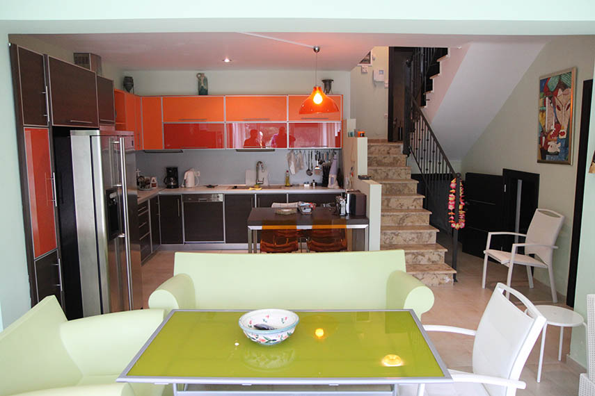 Мезонет имеет 4 уровня, Площадью 190 кв.м. на участке 1000 кв.м., размещает 5 спальных комнат,гостинная комната с камином, кухонная площадь со столовой, 2 ванны комнаты +W/C, подсобное помещение. Паркинг на 2 места,  кондиционер, электрические тенды. Полностью оборудован  всеми электро-приборами, а также комфортной современной мебелью. В саду есть печь -барбекю, с необходимой садовой мебелью.