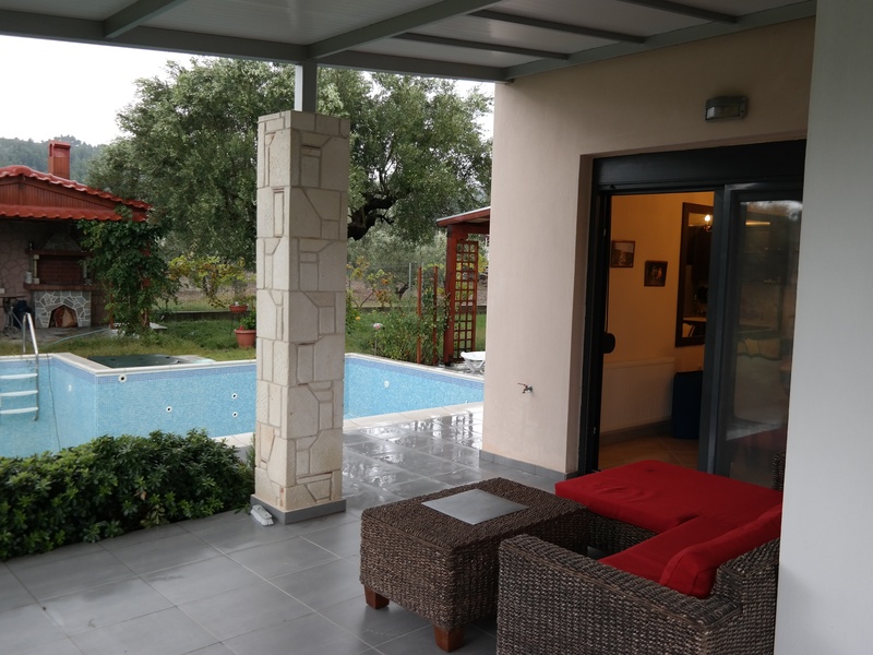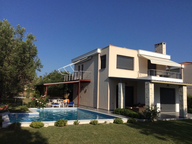 Внимание! СКИДКА до 255000 евро. От Greko paradise real estate купить дом на полуострове Халкидики, первого мыса Кассандра. Расположен вогражденном комплексе на расстоянии 85 км. от международного аэропорта "Македония" г.Салоники. В 300-х метрах от поселения и в 700 метров от моря. Год строения 2012. 2 уровня. Площадь 145 кв.м., на участке частного пользования 1800 кв.м. Имеет 3 спальные комнаты, просторный салон+кухня, 2 ванные комнаты. Отличный качественный дом, с экстра вложениями: сигнализация, спутниковая антенна, солнечные батареи, бойлер, кондиционеры, полностью меблирован отличной мебелью со вкусом, скважина для полива сада, подсобное помещение, большие веранды, автономное отопление на жидком топливе. В саду: бассейн(12х12), крытая беседка с барбекю и летней кухней, водопровод. Кухня оборудовна полностью всей электро-бытовой техникой ведущих марок мира.Крытый паркинг на 2 машины.