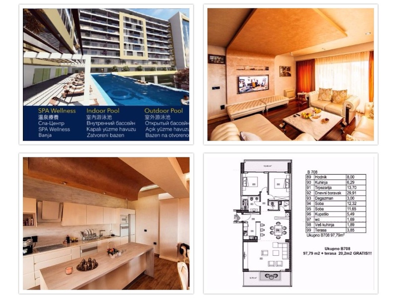 3-х комнатная квартира № А801 в эксклюзивном мульти-комплексе «Porto Budva» с торговым центром 8000 м2 и СПА-центром 3500 м2 с широким спектором услуг с открытым и крытым бассейнами!