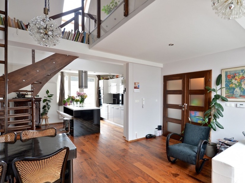 www.abrupt.ru Продается кондиционированная мансардная двухуровневая квартира с ориентированной на запад террасой. Квартира расположена на 6-м и 7-м этажах неоклассического жилого дома с лифтом в привлекательной части Голешовиц (Holešovicе), между парками Стромовка и Летна. Находящаяся под защитой органов охраны памятников истории и культуры часть Праги 7 с отличной инфраструктурой и быстрым доступом к центру города.