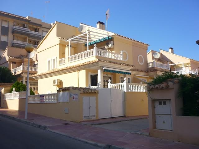 Таунхаус в Гуардамар дель Сегура, Коста Бланка, Аликанте Пляж Монкайо в 5 минутах ходьбы Площадь дома 90 м2 4 спальни 2 ванные Гостиная с обеденной зоной Отдельная кухня Солярий Подвал На участке есть место для парковки автомобиля Установлен кондиционер На территории жилого комплекса есть бассейн Цена 225 000 Евро