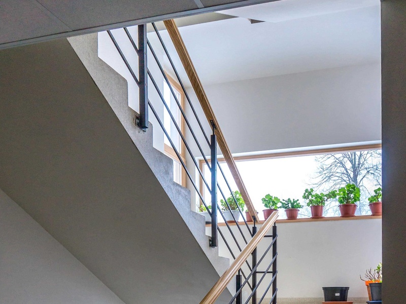 Четырехэтажное здание с надстройкой на крыше и надземной автостоянкой. В просторной зеленой зоне на прилегающей территории обустроены огороженная детская площадка и сад. Дом расположен в излучине реки Петерупе, которая отделяет прилегающую территорию от дороги и окружающей территории. Море на расстоянии 400 м (по пешеходному мостику через Петерупе). Объект окружен частными домами.