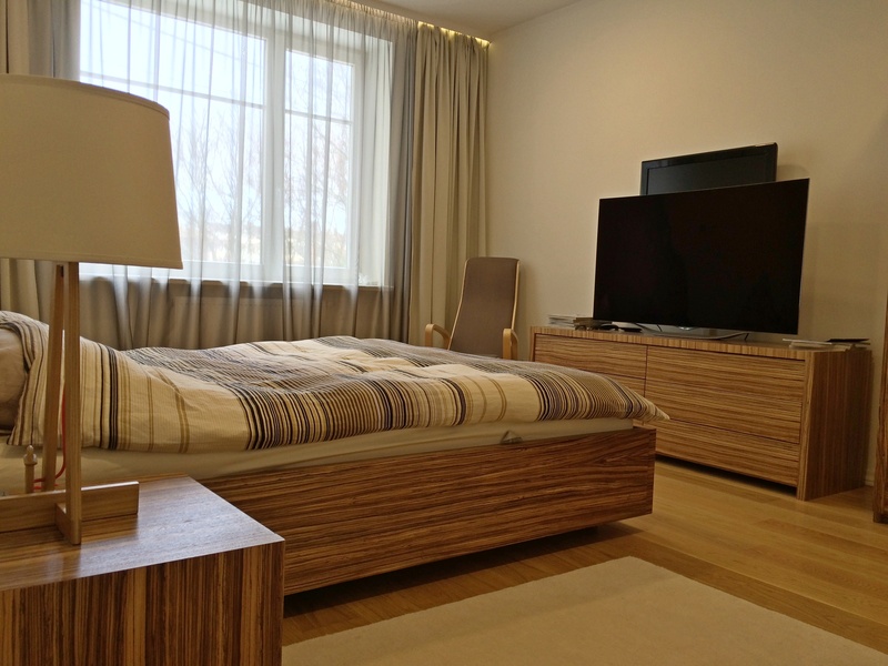 Квартира продается полностью оборудованная, бытовая техника (стиральная машина, сушилка, посудомойка, плита газовая, духовка электрическая, вытяжка, холодильник - все AEG A-класса). Корпусная мебель и стол в большой комнате - шпон. Биокамим. Паркетная доска, ковры ручной работы шерстяные. Стерео системя Elipson (France) - 6 компанентов, фунуция айр плей, усилитель Yamaha, wi-fi, освещение лед во всей квартире. Газовое отопление. Обслуживание 0, 60 EUR/ м. В подземном гараже два парковочных места.