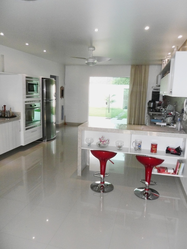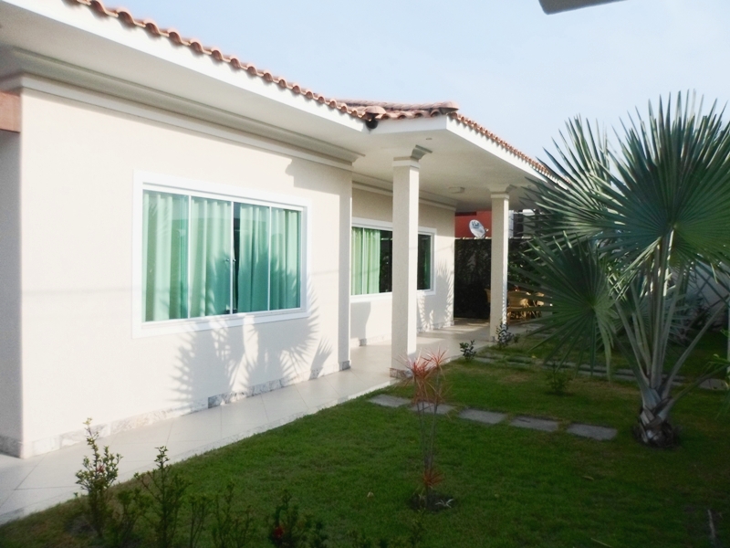 House on paved street in Bacaxá neighborhood. For sale by owner. Located on the high street, on flat land measuring 12.300 square feet (about 1.130 square meters). Great finish, furnished, new appliances. All linear, with no steps. 4,200 square feet of floor space. Hot water in all bathrooms, kitchen and laundry. Solar heater with a thousand liters - 5 double solar panels providing hot water even on cloudy days. Dropped ceiling plaster and porcelain floor. Garage for 5 cars with automatic gate. Large house with 4 suites. 3 suites with walking closet, large living room, indoor bathroom, external bathroom, laundry, balconies in front and back. Gourmet kitchen with pantry, customized furniture, cooktop, hood, 3 tanks, tubular gas and granite countertops. All rooms with ceiling fan, main suite with king size bed and air conditioner. Yard with fruit trees such as lemon, orange, fig and jabuticaba. Bathrooms of the 4 suites to be finished, with hot and cold plumbing already installed. Asking price USD 229,000. Picturesque LAND IN THE BACK with trees, wood oven and wood stove, rustic barbecue area under the trees, kennel, little room for tools, leafy fruit trees such as jamelão and ingá providing plenty of shade, young fruit trees like mango, star fruit, cashew, avocado, jabuticaba, cherry, sugar cane, cranberry and orange.