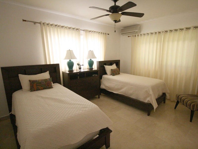 Две спальные комнаты, каждая со своей ванной комнатой (одна двуспальная и две односпальные кровати), гостевая зона, обеденная зона, гостевой санузел, кухня, прачечная зона, комната для прислуги со своим санузлом, большая крытая терраса, личный бассейн, зона барбекю, крытая парковка для двух автомобилей.