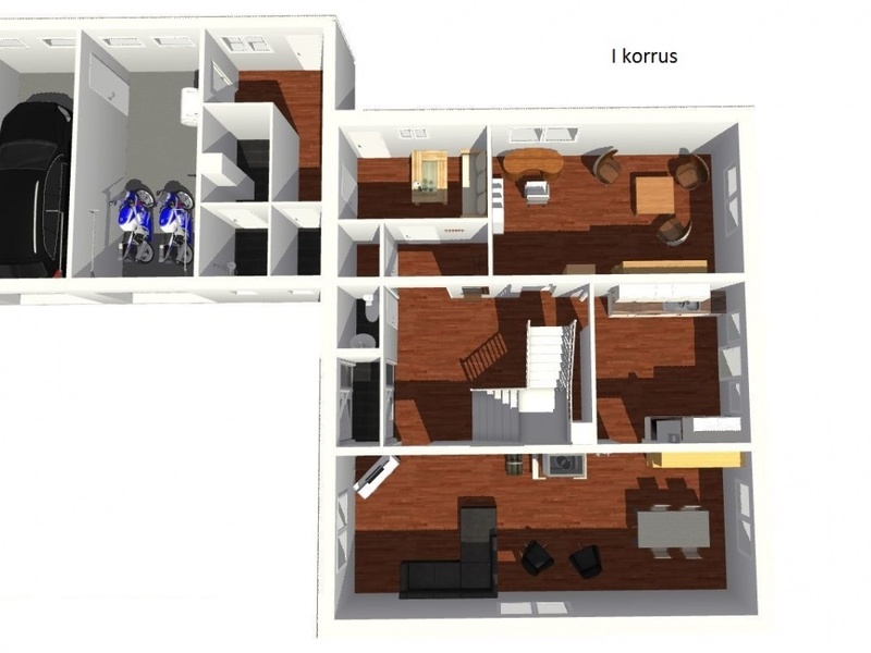 Дом построен по индивидуальному проекту. В доме 5 комнат: на 1 этаже – гостиная, кухня-столовая, гостевая комната, туалет, сауна, прачечная; на 2 этаже – спальня, 2 детские, ванная и туалет, гардеробная и чердачное помещение.