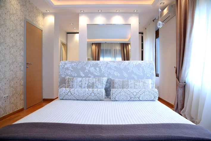 На втором этаже расположены 3 комнаты, одна из которых,главная спальная комната с собственной ванной комнатой( душевая кабина), гардеробной, и балконом с видом на море, другая спальня с видом во двор и детская комната с двумя детскими кроватями в два яруса и с балконом с видом на море. На втором этаже также имеется просторная ванная комната с ванной.