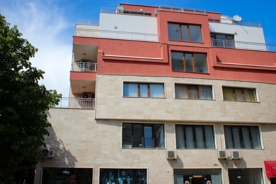 Жилое здание, в котором продается трехкомнатный апартамент, находится в центральной части города. Жилое здание представляет собой пятиэтажную новостройку, первые этажи которой занимают бизнес-офисы. Фасад здания выполнен в современном стиле с использованием натурального камня, практически полностью отсутствуют декоративные элементы, все максимально просто и функционально. Внутренние помещения удобно и рационально распределены. Инфаструктура города одна из самых развитых на болгарском черноморье. В черте города сосредоточены современные гостиничные комплексы, работающие круглогодично, спектр предлагаемых услуг соответстует ожиданиям живущим.