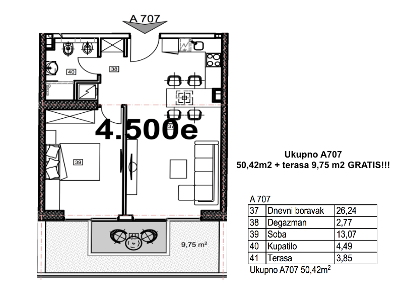 2-х комнатная квартиа № В707 i A707 в эксклюзивном мульти-комплексе «Porto Budva» с торговым центром 8000 м2 и СПА-центром 3500 м2 с широким спектором услуг с открытым и крытым бассейнами!