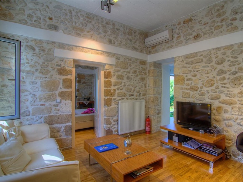 1-этажная вилла площадью 81 кв.м на острове Крит. Вилла состоит из 2 спальных комнат, гостиной, одной кухонной комнаты, 2 душевых комнат. также есть мебель, солнечные батареи для нагрева воды, камин, Жакуззи, кондиционер, сад, подсобное помещение.