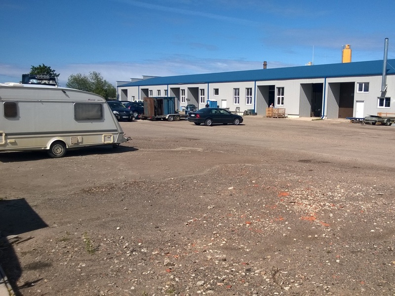 The real estate complex consists of four buildings, asphalted and illuminated areas. 1. building - 1048.4 m2 2. building - 1314.3 m2 3. building - 363.5 m2 4. building - 13.7 m2 The area - 12 907 m2 2014-2015 did a full renovation: retracted heating and each building has an independent heating system that operates with solid fuel, updated wiring, insulated walls, ceilings and foundations, new windows, new automatically operated doors, the size of which allows the entry of heavy vehicles.