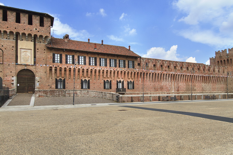 Замок в центре Галлиате, в нескольких километрах от Милано и аэропорта Малпенса, был построен в 1476 году на фундаменте предыдущей крепости висконта. Работы были приостановлены и продолжились в 1496 году, когда Людовик Моро сделал из него резиденцию для охоты. В 1532 году замок станет вотчиной семьи маркизов Караваджо ди Сфорца. В 1878 году замок был разделён и начались работы по реставрации, которые были закончены в 1980 году нынешними владельцами. Замок состоит из двух частных жилых частей, которые могут быть соединены. Одна часть замка имеет вход с фресками 18 века, гостинную с камином, венецианское мраморное половое покрытие, столовую с паркетом 18 века. Имеется кухня с терракотовым полом и гостевой санузел. На втором этаже кабинет, 3 спальни и 2 ванные комнаты. На мансардном этаже имеются отдельные апартаменты, состоящие из гостинной с американской кухней, спальни с гардеробной комнатой и ванной комнаты, имеется чердак. Эти апартаменты имеют отдельный вход с главных ворот замка. Вторая часть состоит из прихожей, кухоньки, столовой, гостинной с камином и балконом, смотрящим на ров. Имеется гостевой санузел. На втором этаже расположены 3 спальни, одна из которых с камином, ванная комната и гардеробная комната. На мансардном этаже имеются спальня с ванной комнатой, гостинная с американской кухней, два гардероба и чердак. Имеются подвалы на цокольном этаже. Элегантный внутренний садик 1000 кв.мт. Реконструкция внутреннего фасада произведена в 2009 году. Часть стеклопакетов новая, с двойным стеклом. Отопление на метане двумя котлами. Фасад замка кирпичный.