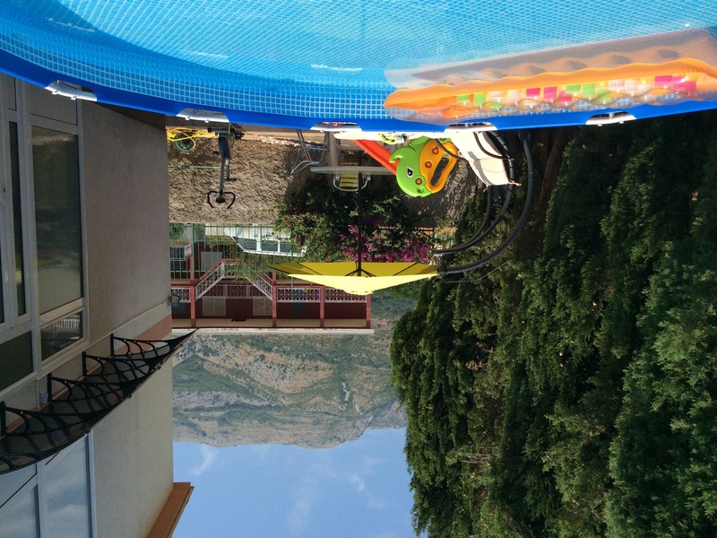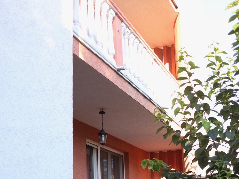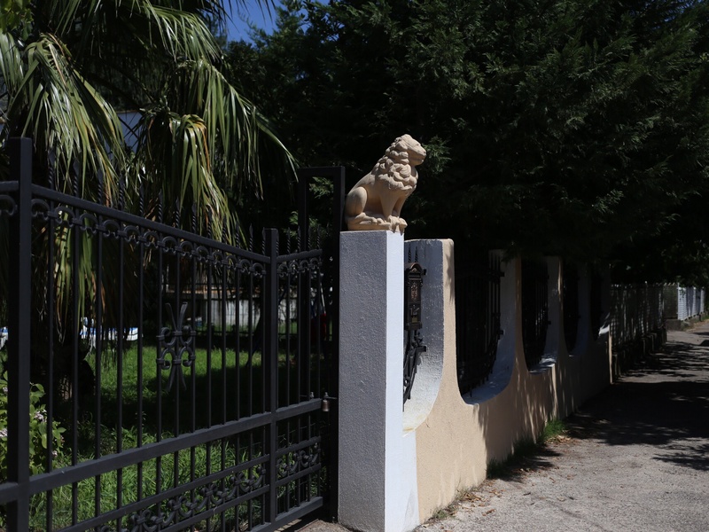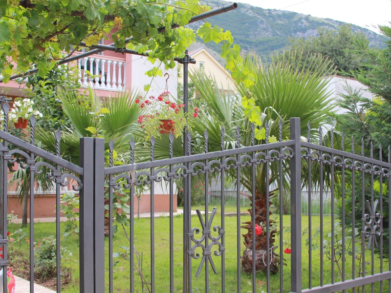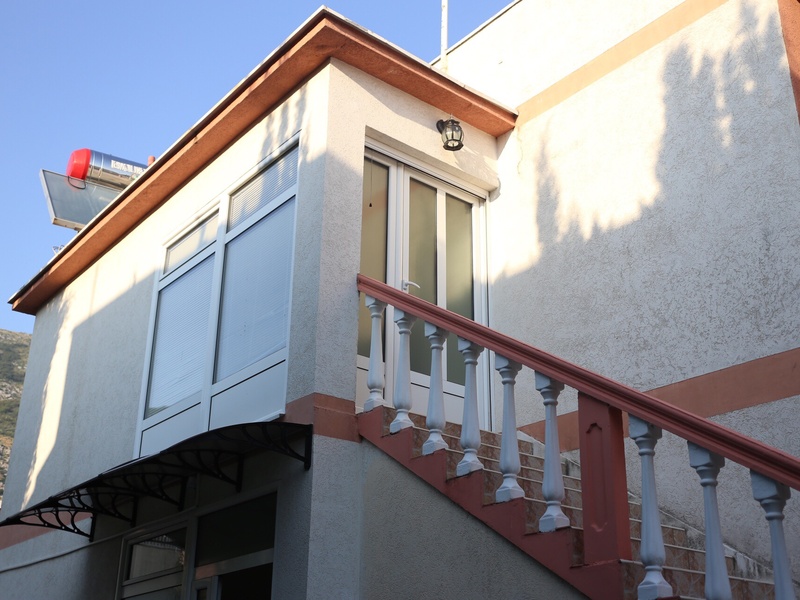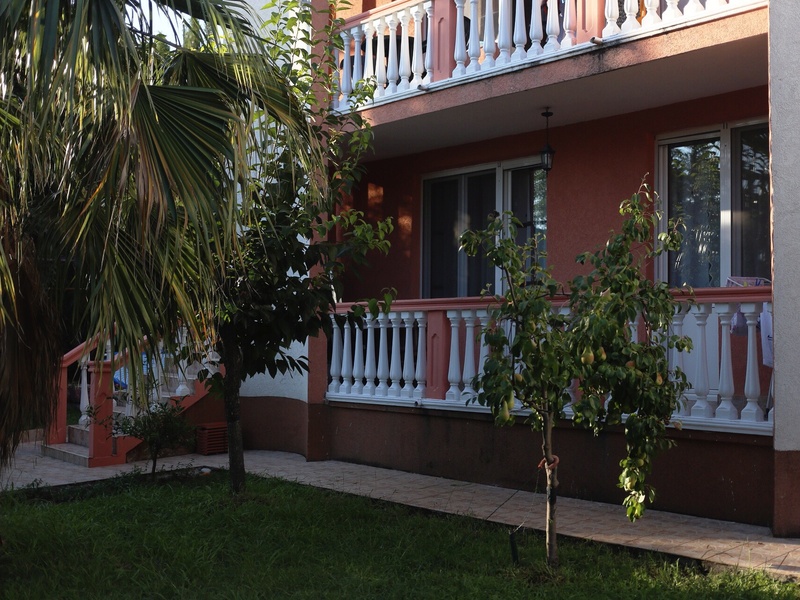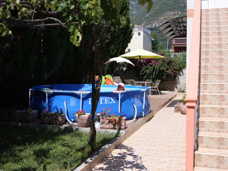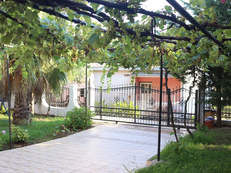 садом ,виноград и плодовые деревья, груши, черешня, хурма . Дворовая территория ухожена и оснащена современной системой полива . У дома есть площадка с зоной для отдыха ,  парковка для 2 машин . Вода централизованная, отличного качества, горячая от системы солнечного обогрева , система современная . Есть где поставить бассейн в том числе стационарный. Дом хорошо сдается в сезон с июня по октябрь. Рядом , 5 минут ходьбы супермаркеты, аптеки, кафе , рестораны . Дом находится ниже главной дороги, поэтому шума от машин нет, воздух чистый. Вообще тихое и прекрасное место . До города Бар на авто или автобусе 10 минут , до аэропорта Тиват или Подгорица 40 минут . Соседи доброжелательные . Идеален для семей с детьми .