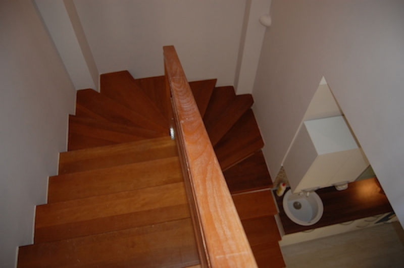 На первом этаже расположены: гостиная со столовой, санузел, место для стиральной машины, балкон.
